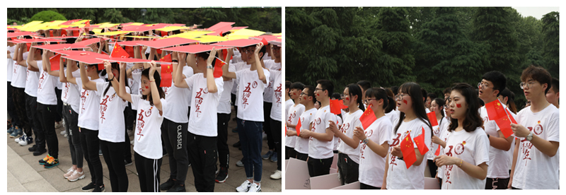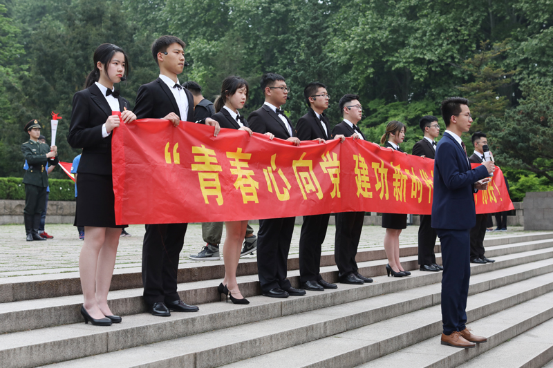在雨花台烈士陵园,青年学生们还开展了“五四接力跑”活动。活动以1921年中国共产党成立、1945年中国抗日战争胜利、1949年中华人民共和国成立、1978年改革开放、2019年五四运动一百周年为六个重要时间节点,将54名同学组成的青春火炬接力队分为6组,在6名青年党员的带领下依次接力,在“穿越”百年历史的同时,将“五四”精神薪火相传。