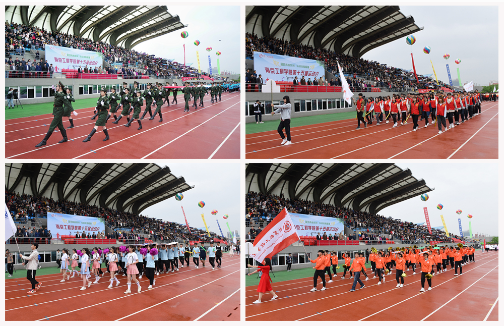 入场仪式在激昂奋进的《运动员进行曲》中开始,国旗队、校旗队、彩旗队迈着坚定有力的步伐率先入场,经过主席台接受检阅;裁判员方阵、志愿者方阵紧随其后,精神抖擞,英姿飒爽;各学院运动员方阵依次入场,整齐的队伍、响亮的口号、充满创意的入场方式展现了学校师生们积极进取、勇于争先、昂扬向上的精神风貌,赢得了现场师生的阵阵掌声。