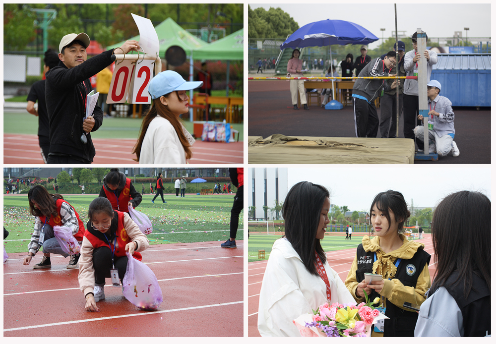 赛场上主角——运动健儿们永不言弃、顽强拼搏的精神让我们动容。但还有那么一群人 ,他们奔波在操场上,穿梭在人群中,他们虽然不是主角,但运动会的顺利举办离不开他们的辛苦付出与默默守护。裁判员尽管雨水浸透了衣衫,依然认真观察着运动健儿们的一举一动;提供后勤保障服务的师生,用他们的专心和专注,为运动员们保驾护航;志愿者四处奔波,鲜艳的红马甲成为了运动场上一道亮丽的风景线;小记者们用文字和镜头记录下每一个精彩瞬间……“能够为运动会的成功举办出一份力,是我们的责任,也是我们的荣幸。今天虽然有点降温,但没有阻挡运动健儿们的拼搏与努力,零距离感受运动赛场的精彩瞬间,感觉棒极了。”材料科学与工程学院高分子182班的许陈同学说。
