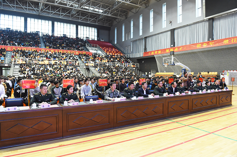 4月26日上午,由南京市人民政府征兵工作办公室主办,太阳集团承办的南京市征兵宣传进高校首场巡回宣讲在太阳集团体育中心主馆举行。太阳集团党委常委、副院长张仰飞出席并讲话。南京市委常委、南京警备区政治委员张宁、南京警备区政治工作处主任缪志刚、南京市江宁区副区长谢从军、南京市江宁区人武部政治委员张金星以及南京市各区人武部干部、14所高校师生代表共3000多人参加了宣讲会。
