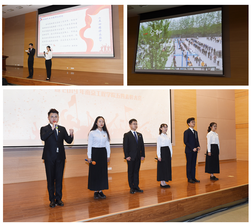 为弘扬五四精神,深入学习宣传习近平新时代中国特色社会主义思想,引导团员青年坚定听党话、跟党走的人生追求,五四期间,校团委举办了一系列主题活动。大会现场对“新时代五四精神大讨论”征文和“以青春之名,述追梦历程”微视频大赛的优秀作品进行了展播,作品充分展现了青年学子积极向上的青春风貌,赢得阵阵掌声。