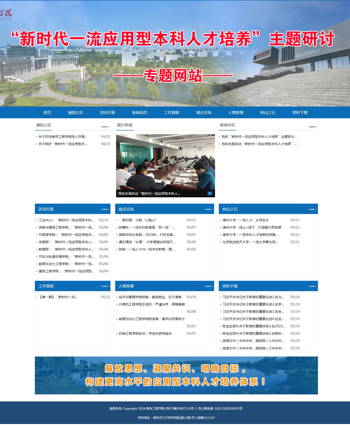 按照学校制定的关于深入开展“新时代一流应用型本科人才培养”主题研讨活动的实施方案,为使广大师生及时、准确地了解主题研讨活动开展情况,党委宣传部、教学质量管理办公室(高等教育研究所)联合制作了“新时代一流应用型本科人才培养”主题研讨活动专题网站。网站地址为:jxyt.njit.edu.cn,在学校主页设有专题链接。