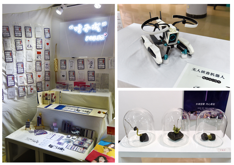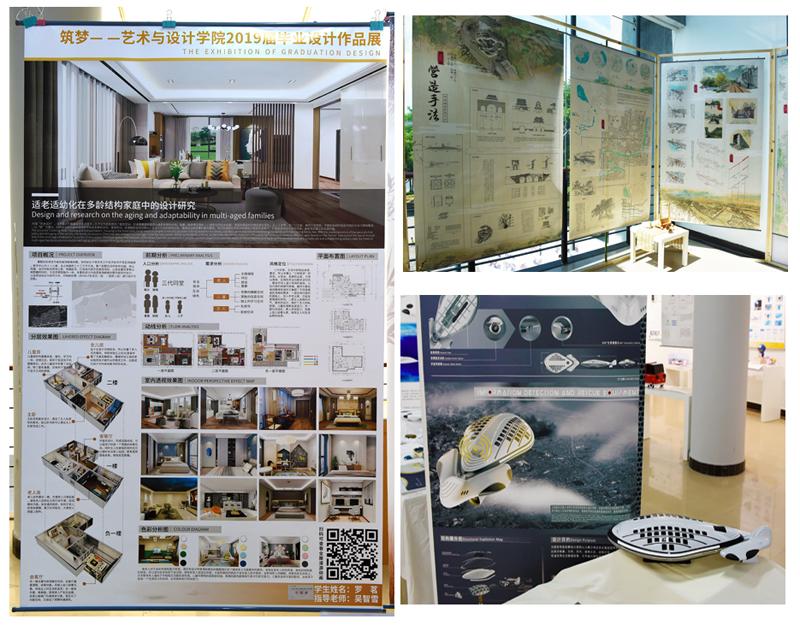 本次展览共展出艺术与设计学院2019届6个专业268名毕业生的优秀作品,作品形式多样、内容丰富,文化韵味十足。其中,季亚南团队的三维动画短片《梦魇之夜》以“环保”为主题,通过梦魇的形式将“垃圾”奇幻化呈现,无论从创意思想还是技术操作上都成熟优质;黄鲁辰的作品《玉石工艺产品设计——柔》,运用和田玉的材质,搭配普通的石头,创造出精致的玉石工艺品,充分体现“外表坚硬、内心柔软”的人性特征;马筱雨的《又见敦煌》文创产品开发及衍生品设计从造型、色彩、符号等多方考量,将传统艺术样式与现代精神相结合,对文化遗产的传播及文创产品的融合实现具有很好地价值意义;黄文杰团队的《南京明城墙的景观意向》旨在将富有厚重感的历史遗迹明城墙通过分层设计、新旧结合等理念重塑,更加融入当代市民尤其是年轻群体的生活,在功能区、材料、文创产品上有所创新,增加市民体验感和生活态,让明城墙重新焕发生机。