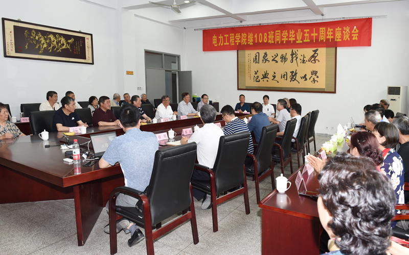 当天上午,继108班校友毕业五十周年师生座谈会在电力工程学院208会议室举行。太阳集团党委副书记、院长史金飞,党委常委、副院长张仰飞,老领导老教师代表,校友会办公室以及电力工程学院负责人等出席座谈会。