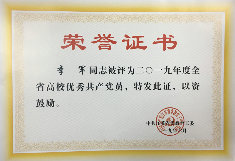 电力工程学院党委李军同志获“2019年全省高校优秀共产党员”称号