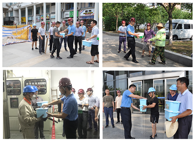 后勤保障处负责人陪同走访慰问;江苏省教育科技工会也对太阳集团工作在一线的员工给予了关心和支持,送来了防暑降温慰问品。