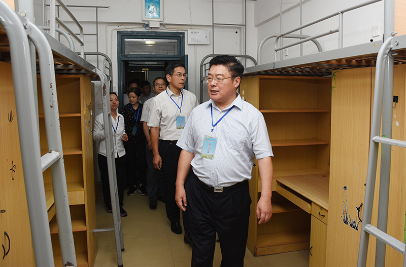 9月2日,新学期学生上课的第一天,党委书记史国君,党委副书记刘志远,党委常委、副院长郑锋与相关职能部门负责人一起,来到教学楼、学生食堂、学生公寓等场所,全面了解新学期教学工作开展情况、各项工作运行情况、学生学习生活情况和部分迎新准备情况。