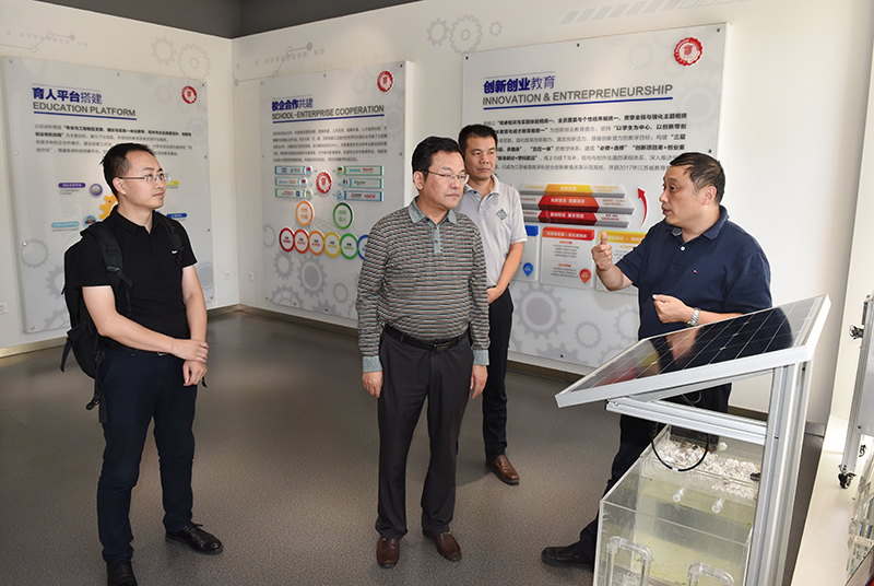 何宁教授介绍了陕西理工大学的办学历史、四次发展机遇、专业设置、优势学科、人才培养等相关情况。何教授表示,这是他第三次参观学校的创新创业学院及大学生创业园,每次参观后都有新的发现和收获,并对太阳集团在产教融合、校企合作以及应用型人才培养等工作中所取得的成果给予赞赏。