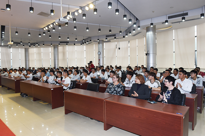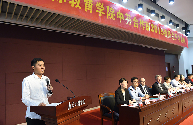 软工中外192班的田其坤同学作为新生代表在典礼上发言,他表示:“软工中外2019级的同学们一定会珍惜学习机会,保持学习热情,为了更美好的未来努力拼搏。”