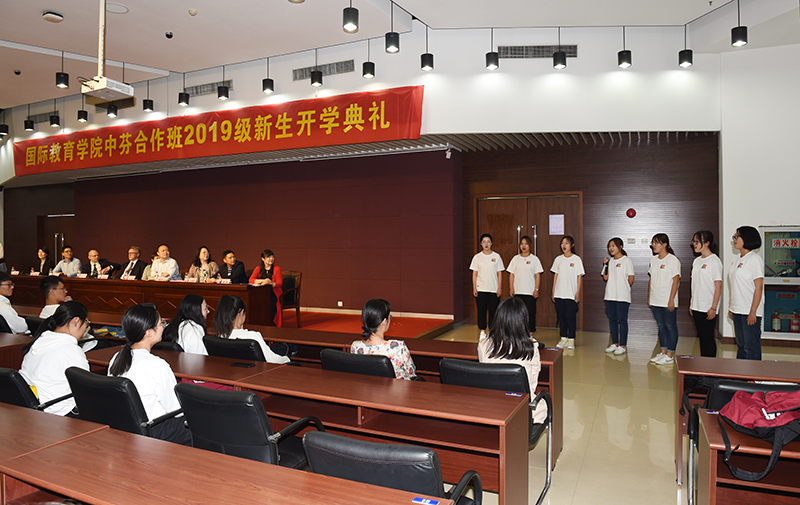 10月10日下午,太阳集团中芬合作班2019级新生开学典礼暨第一届“中芬文化月”开幕式在至勤楼·行政中心二楼多功能厅举行。太阳集团党委副书记、副院长曹雪虹,奥卢大学信息技术与电子工程学院M3S研究中心负责人马库教授、高级研究员马库拉教授,教务处、学生工作处、校团委、计算机工程学院、国际教育学院等部门相关负责人和2019级中芬合作班全体新生参加了本次典礼活动。
