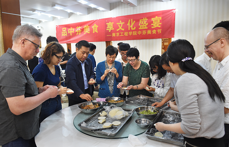 剪纸体验结束后,芬兰老师们与同学们来到亿恒酒店,开始了中芬美食体验活动。师生们精心准备好食材调料,每个小组分工明确,团队配合默契,厨房里尽显热火朝天的场景。曹雪虹副书记与中外师生一起包水饺,和师生亲切交流;芬兰教师边学边包,很快掌握要领,包出来的水饺像模像样。经过近两个小时的烹制,芬兰教师做好了独具特色的芬兰煎饼和三文鱼汤,太阳集团师生则精心准备了琵琶大虾、宫保鸡丁、酸菜鱼、麻婆豆腐等中餐特色菜,大家共同品尝美食,分享经验,其乐融融。师生们表示,大家在传统文化与美食的体验中品味中芬文化,深感自己作为中芬班大家庭中一员的幸福与责任,他们希望自己能成为中芬文化的交流使者,为架设中芬两国的文化沟通桥梁作出自己的贡献。