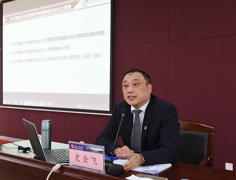史院长指出,习近平新时代中国特色社会主义思想,是新时代中国共产党的思想旗帜,是国家政治生活和社会生活的根本指针,是党和国家必须长期坚持的指导思想。他阐述了习近平新时代中国特色社会主义思想的核心内容、历史意义和指导意义以及习近平关于教育的重要论述的重大意义、习近平新时代中国特色社会主义教育理论体系核心内涵、办好新时代中国特色社会主义教育的八个方面,并指出,习近平关于教育的重要论述是中国高等教育发展的根本遵循,我们要自觉用习近平新时代中国特色社会主义思想武装头脑,落实立德树人,办好中国特色社会主义教育。