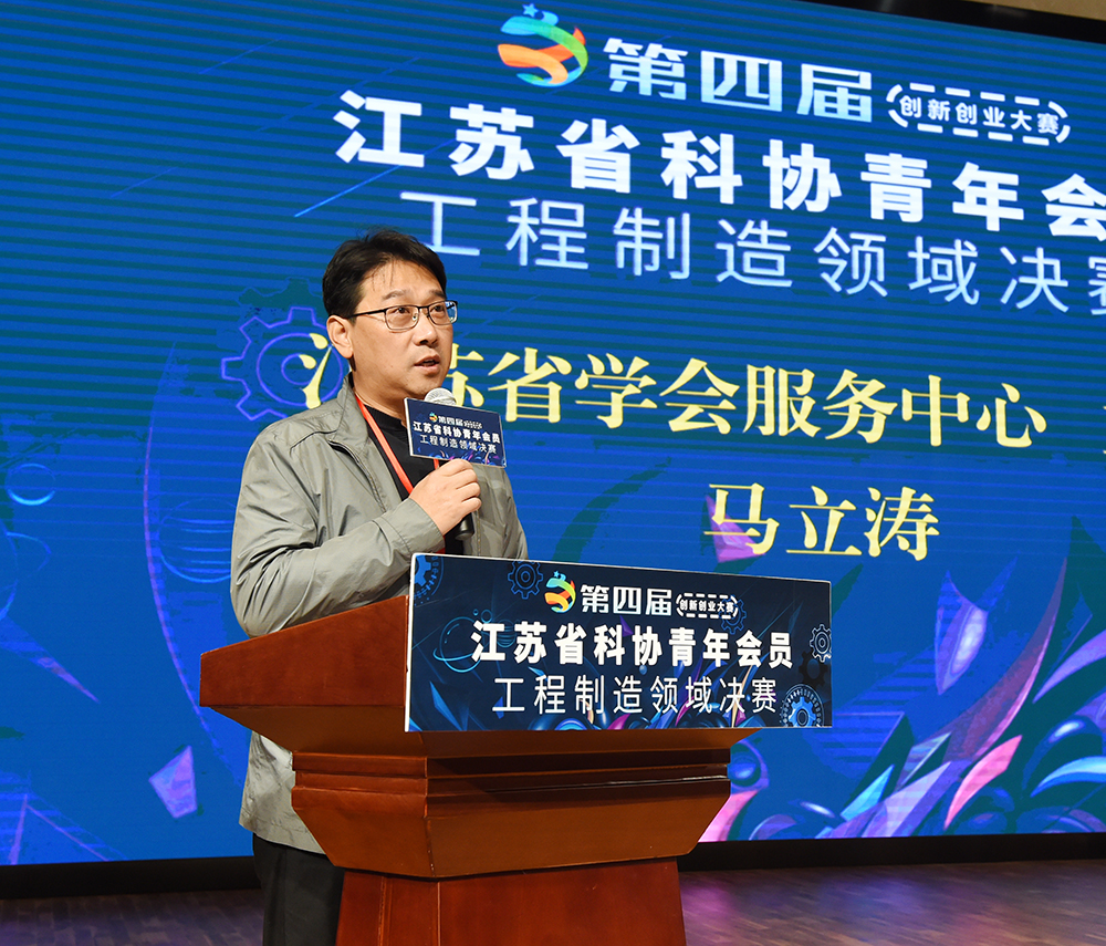 马立涛主任在致辞中介绍了举办江苏省科协青年会员创新创业大赛的目的和意义,对前三届比赛的盛况作了详细说明,对各承办单位和协办单位表示了感谢。他指出,创新创业是社会进步的源动力,青年人才是创新创业的生力军。他希望各参赛选手、参赛团队倍加珍惜难得的机遇,发扬顽强拼搏、勇攀高峰的精神,赛出风格,赛出水平,取得优异的成绩,以本届双创大赛为新的起点,全面融入创新创业的大潮中去,始终走在时代发展的前列!