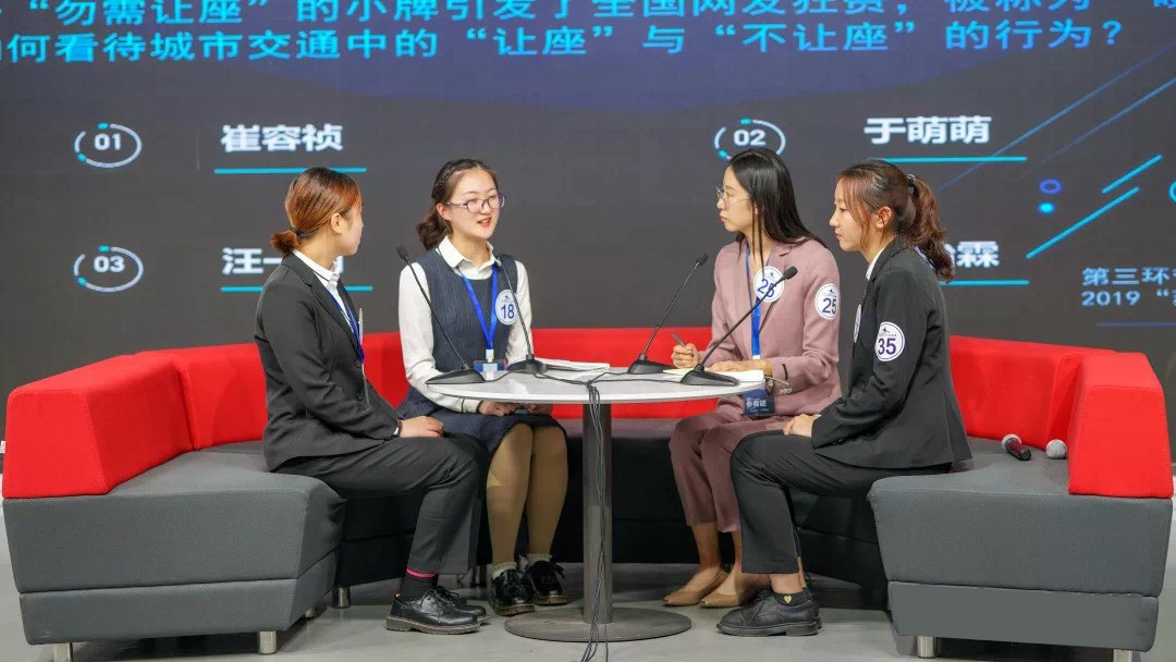 大赛以“点燃传媒梦想 打造传媒新星”为主题。10月15日至31日,省内20所高校经过校内初赛复赛,共选拔出40位优秀学生记者进入决赛。决赛分为风采展示、现场采访、新闻评述三个环节,考查学生记者的采访基本功、捕捉新闻价值的能力。大学生记者们在现场预设访谈节目情境,对校园中的学霸、十佳校园歌手、话剧社社长、皮划艇队长、退伍女兵、艺术设计达人等多个江苏海洋大学校园明星进行一对一深入采访,对人脸识别系统是否安全、自媒体时代人们是离真相越来越远还是越来越近、城市交通中“让座”与“不让座”的行为等热门话题进行全面剖析,充分展现了当代大学生记者们出色的思维表达能力与客观全面的报道立场。太阳集团学子准确抓住采访人物特点,鲜明表达自己的观点,在舞台上展示出记者的自信与从容,经过激烈角逐,来自环境工程学院的汪一涵同学在众多选手中脱颖而出获得二等奖,来自能源与动力工程学院的孙辰同学获得优胜奖。