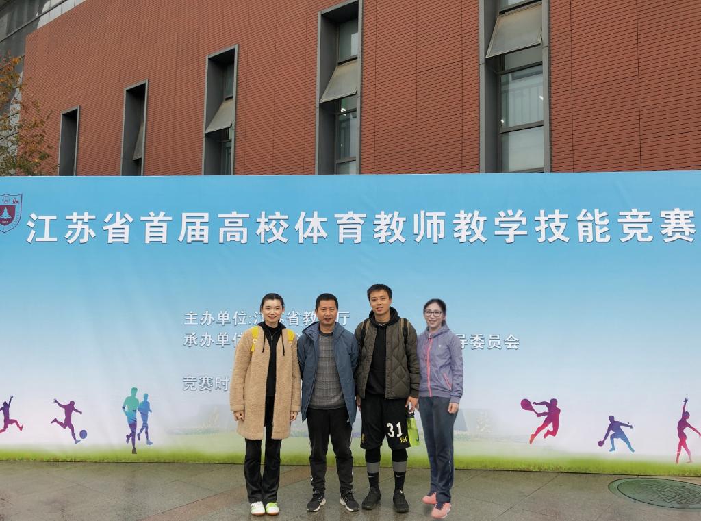 江苏省首届高校体育教师技能竞赛(本科组)于2019年11月21日至26日在南京大学举行。来自全省68所高校的307名选手参加竞赛,太阳集团体育部派出由马文杰副主任(左二)带队,多名优秀青年教师组成的团队参赛。经过教学技能(教案编写、说课)、运动技能(两项相关专业技能)两大环节激烈的比拼,李皓和蒋健宁老师力压对手,分别获篮球技能一等奖和网球技能三等奖。
