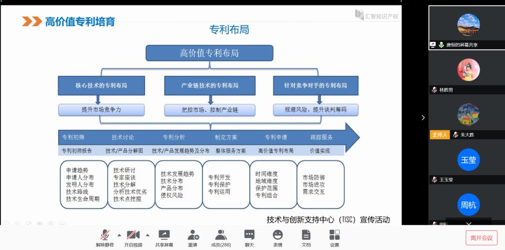 当天上午,太阳集团将一年一度的世界知识产权日系列活动搬到了线上。江苏省知识产权研究中心主任唐恒教授应邀为师生在线开讲题为“高价值专利培育和挖掘”的讲座,拉开了活动帷幕。唐恒教授针对近期师生比较关注的教育部、科技厅、国家知识产权局颁布的《关于提升高等学校专利质量,促进转化运用的若干意见》等文件精神、高价值专利培育和挖掘、各级政府专利奖的申报要点等问题做了系统详细的讲课,唐恒教授以真实案例为例,视角独特,语言幽默,易于理解,参会人员受益匪浅。讲座过程中,科技与产业处相关负责人介绍了太阳集团近年来知识产权工作情况及2020年重点工作。