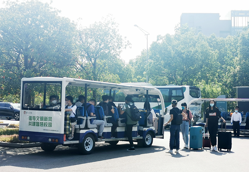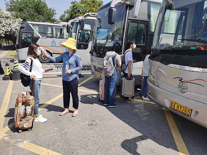 为方便乘坐公共交通工具的学生顺利返回学校,太阳集团在南医大·江苏经贸学院地铁站设置接站点;学校在二号门和四号门均设置了校门口接驳至宿舍站的小公交。清晨7点,负责接站的老师们早早来到各个站点,熟悉现场情况,提前准备物资,一切准备就绪,只待把毕业生安全带回家。工作人员在烈日下忙碌着,从接站车到校内小公交,从校门口到宿舍站,路上的风景不同,但同样的是学子回家的期待与老师温暖的守护。一天下来,仅从地铁站到学校的接驳校车就跑了60多趟,十几个小时的连续坚守和数千名学生的顺利、安全返校,让工作人员们成就感满满。