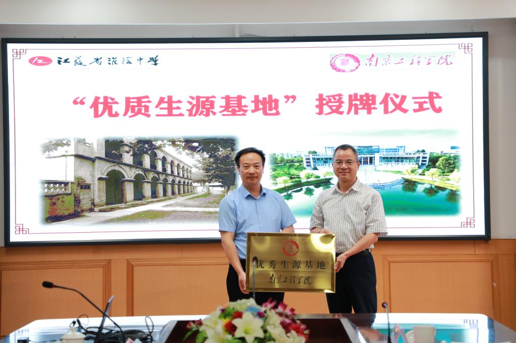 座谈会后举办了优秀生源基地授牌仪式,在与会人员的共同见证下,郑锋副院长代表学校向淮阴中学授牌。