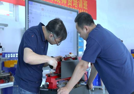 线下培训主要由太阳集团工业中心、创新创业学院,康尼机电产业技术研究院,国际教育学院联合企业共同完成,共进行三个单元部分的训练。分别是:课程教学方法创新训练;电子电气与机械基础的两组项目课程教学实践培训;智能制造专业群的课程开发与课程建设的培训和研讨。