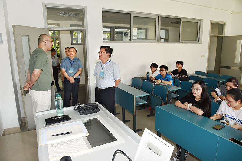 常态化疫情防控形势下的新学期开学已经一周了,时隔8个多月,师生们又回到了熟悉的教室,线下教学秩序如何?师生的精神状态怎样?9月8日上午,党委书记史国君,党委副书记、院长史金飞,党委常委、副院长郑锋深入课堂,对新学期教学工作进行检查指导,学校相关职能部门负责人陪同检查。