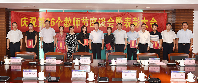 会议举行了颁奖仪式,对从事教育工作满三十年的同志、获得教学质量标兵和教学质量优秀奖的教师、获得各类省级荣誉称号的教师进行表彰。校党委副书记、副院长曹雪虹,校党委副书记濮励杰分别宣读了相关表彰决定,校领导为受表彰的先进个人颁发荣誉证书,并合影留念。