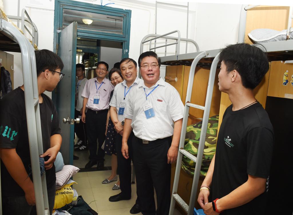 上午十时许,校领导们来到新生报到处、引导点、绿色通道接待处、学生宿舍等地,了解迎新工作开展情况,慰问参与迎新工作的师生,叮嘱大家要做好自身防护,在做好疫情防控的前提下,以热情的服务让学生满意、让家长放心,切实保证每位新生平安入校、顺利入住。