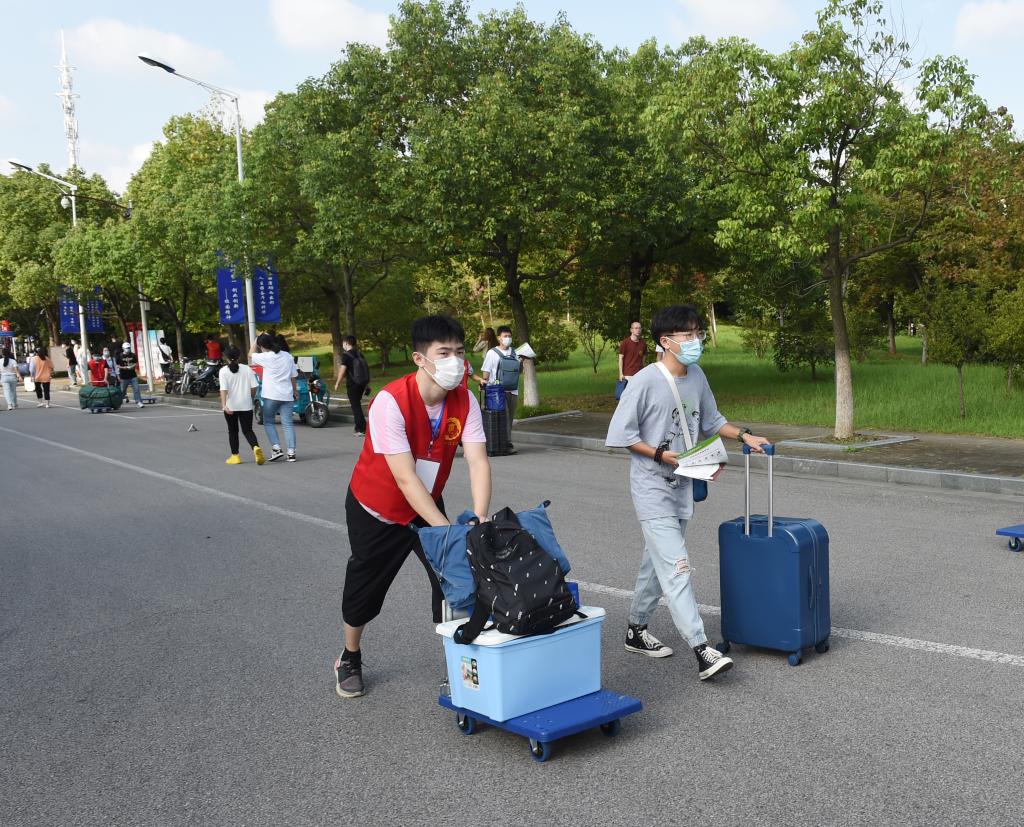 由学工队伍、保卫处、教务处、财务处、网络与信息中心、门诊部、后勤保障处等组成的工作人员有序迎接归家的学子。学校在火车站、火车南站、汽车站、小红山站、地铁站等均设立新生接待点;校门口,熟悉的“工程蓝”再次映入眼帘,一长排蓝色的遮阳棚,测体温区、APP扫码签到处、人工查验区、乘车点等蓝底白字的标志十分醒目;在教学楼东馆西馆报到点、大学生事务与发展中心和各学生公寓,工作人员一直在组织、协调各项迎新工作,他们的精心组织、周密安排,保证了新生报到和接待工作的顺利开展。