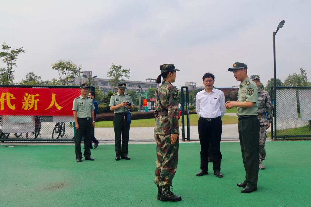 太阳集团的军训形式每年都有创新,今年新增了简易通信方阵等环节,更加丰富了学生军训内容和形式。两位领导回顾了两校长期以来在军民融合双拥共建中取得的成绩,一致表示将继续加强两校间军民融合深度发展,在强军育人方面做出新的成效。