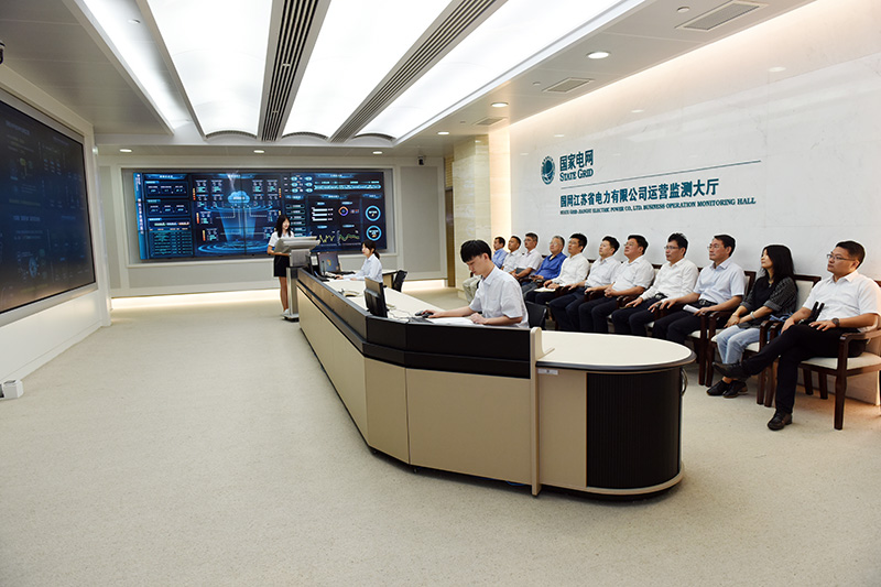 会前,调研组在国网江苏省电力有限公司领导陪同下,参观了国网江苏电力运营监测大厅和省电力调度控制中心。