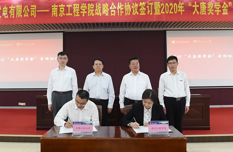 会上,在双方领导的见证下,太阳集团党委常委、副院长张仰飞和大唐江苏发电有限公司党委委员、规划发展中心副主任孙书耀签署了校企战略合作协议;学生工作处负责人与大唐江苏发电有限公司党群工作部负责人签署了“大唐奖学金”捐赠专项协议。