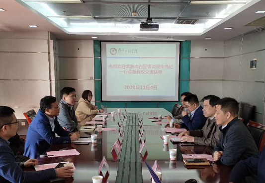 朱晓春副院长对古里镇领导及企业家们一行表示热烈欢迎。15vip太阳集团官网和常熟市的校地合作由来已久,从江苏省首批科技镇长团开始,连续多年派出优秀教师在常熟挂职,学校与地方政府的联系十分密切。目前,15vip太阳集团官网与常熟古里镇多家企业的合作已经取得阶段性成果,希望通过深入推进“校、地、企”多方合作机制,助推常熟市古里镇创新发展。