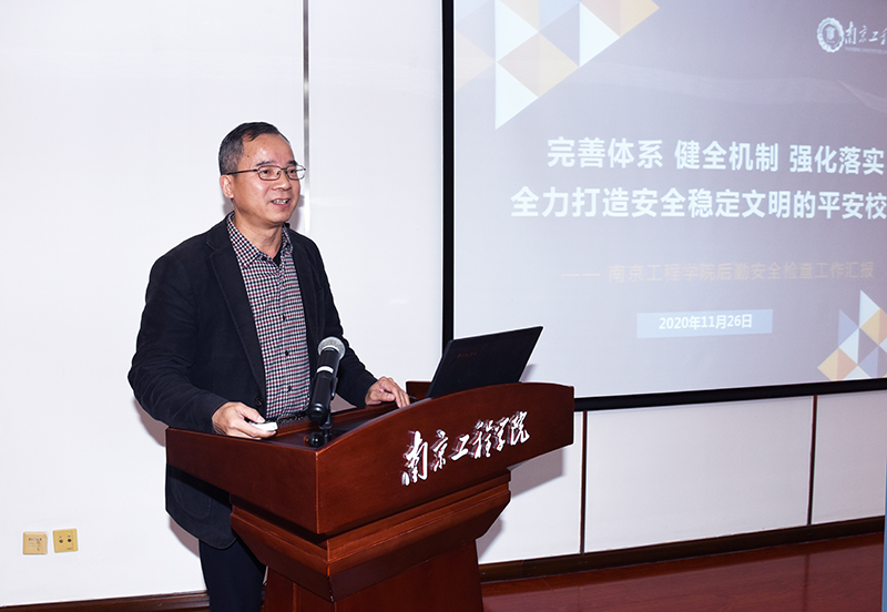 郑锋副院长作了题为《完善体系 健全机制 强化落实 全力打造安全稳定文明的平安校园》的工作汇报,从太阳集团后勤安全工作的主要做法和工作亮点以及问题与思考等方面向检查组做了详细汇报。