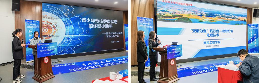 决赛现场,各项目负责人分别从项目概述、产品(服务)功能、市场分析、营销策略、财务预算等方面做了展示与陈述。各项目陈述完毕后,评审专家针对性地提问、点评并给予专业性建议。经过4个多小时的激烈角逐,自动化学院推荐的《水智蓝——智慧河长仿生鱼水下暗管探查开拓者》(负责人:姚新科)等2个项目荣获一等奖,材料科学与工程学院推荐的《变废为宝践行者——餐厨垃圾处理技术》(负责人:胡梦月)等5个项目荣获二等奖,机械工程学院推荐的《南京云逸科技有限公司》(负责人:盛旺)等6个项目荣获三等奖,计算机工程学院推荐的《青少年脊柱健康状态的诊断小助手》(负责人:吴遥)等10个项目荣获优秀奖。