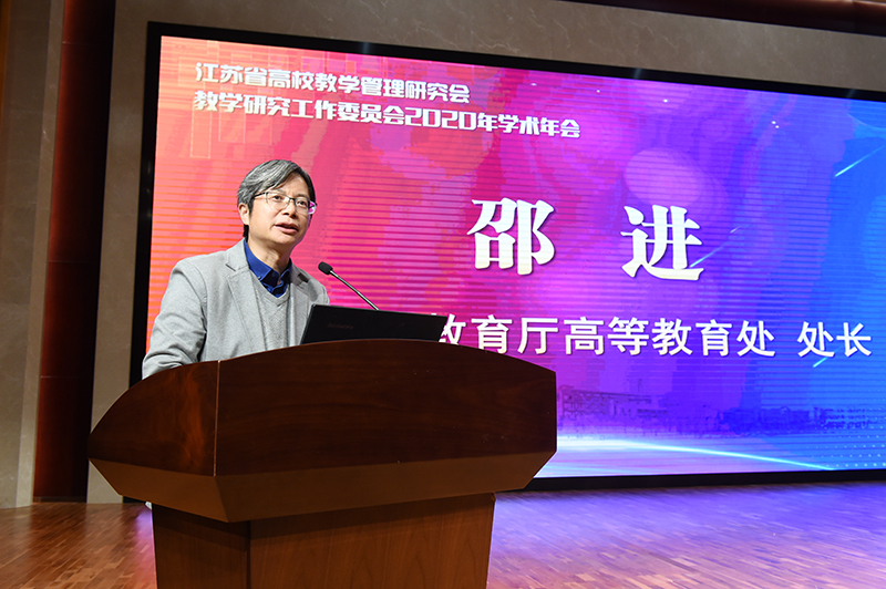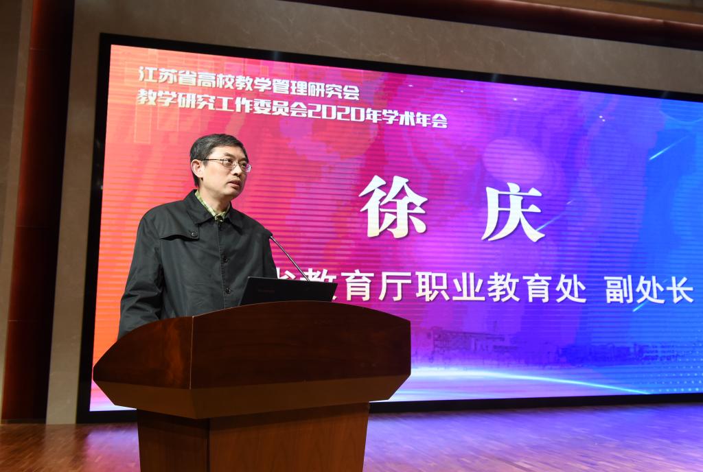 江苏省教育厅高等教育处邵进处长在讲话中指出,我国高等教育面临着百年未有之大变局,十九届五中全会对高等教育提出了更高的要求。要更加强调立德树人、以人为本,做具备系统思维、超前思维、创新思维和实践思维的新时代高等教育教研工作者。江苏省教育厅职业教育处徐庆副处长在讲话中回顾了江苏省在职业教育方面的重大举措与成果,并对下一阶段工作做了展望。