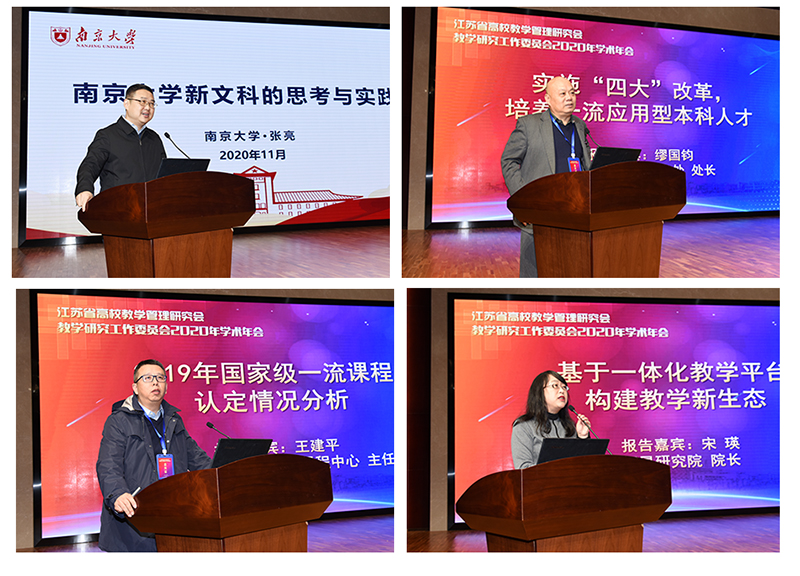 南京大学教学委员会副主任、研究生院张亮副院长、太阳集团教务处缪国钧处长、江苏高校在校开放课程中心王建平主任、超星研究院宋瑛院长受邀分别做了题为《南京大学新文科的思考与实践》《实施“四大”改革,培养一流应用型本科人才》《2019年国家级一流课程认定情况分析》《基于一体化教学平台构建教学新生态》的精彩报告。