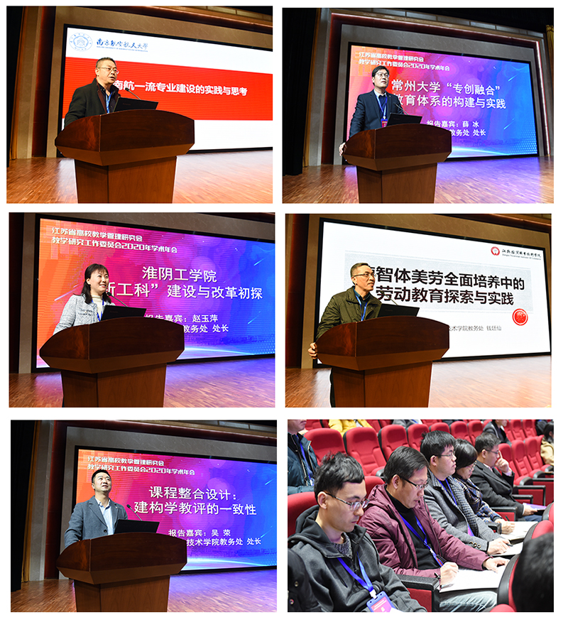 在下午的院校交流环节中,南京航空航天大学教务处刘长江副处长、常州大学教务处薛冰处长、淮阴工学院教务处赵玉萍处长、江苏经贸职业技术学院教务处钱廷仙处长、常州机电职业技术学院教务处吴荣处长,分别围绕“一流专业建设”“‘专创融合’教育体系”“‘新工科’建设”“德智体美劳全面培养中的劳动教育”、“学教评的一致性课程整合设计”等难点、热点问题,进行教学改革和管理经验分享和交流。