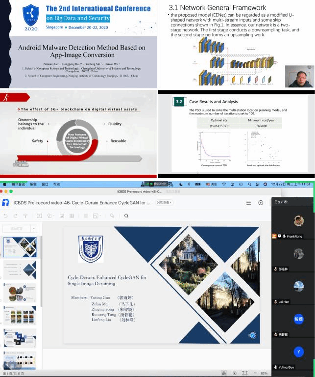 在随后两天的会议中,会议论文作者通过视频会议平台进行线上报告、现场答辩,共同就当前大数据、物联网、人工智能、区块链等多个领域的安全与人工智能技术进行探讨;此外,大会组委会还邀请了部分学者开展了线下的学术沙龙活动。