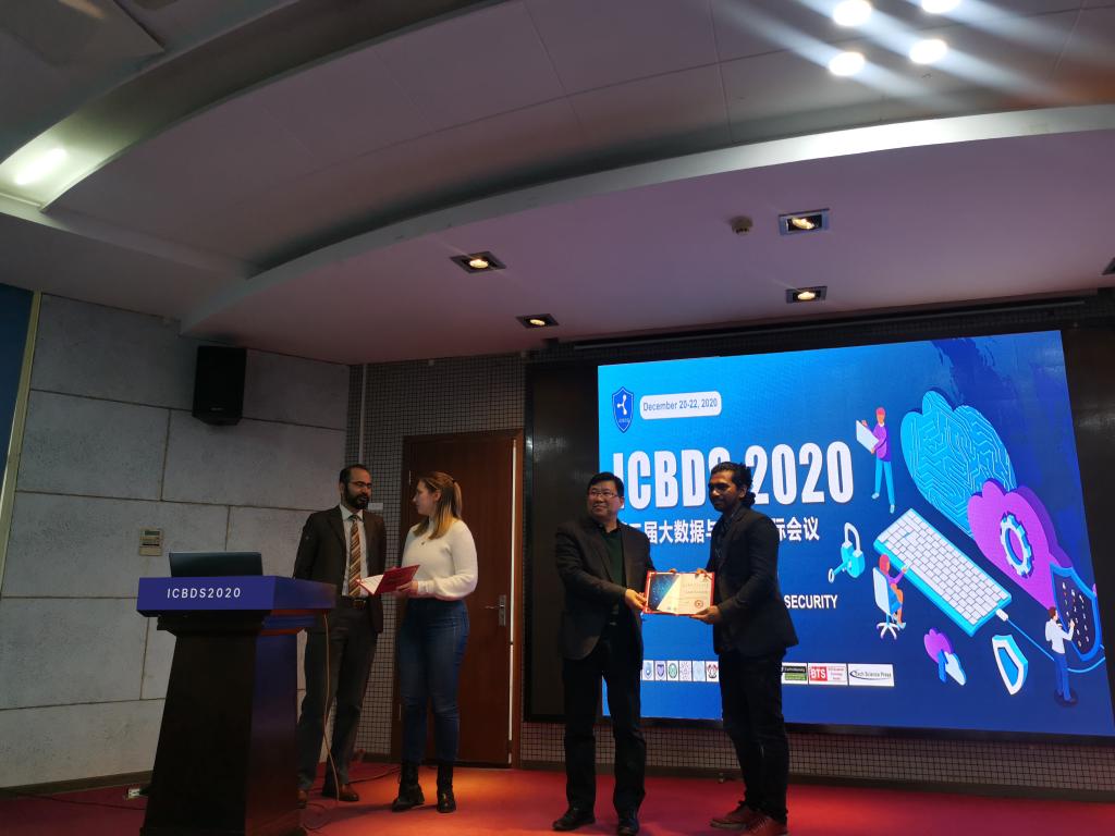 据悉,大会共收到来自多个国家和地区的论文投稿150余篇,录取论文50余篇。所有录取文章将由世界第一科技出版社施普林格Springer发行的Big Data and Security论文集收录并EI检索。优秀论文将被推荐至IEEE Access、Electronics、Sensors、Security and Communication Networks、Computer Modeling in Engineering & Sciences、International Journal of Sensor Networks等SCI杂志发表。大会闭幕式上,大会主席、太阳集团计算机工程学院田源副教授等为获奖者颁奖并对他们表示祝贺。田源表示,在突如其来的疫情当前,会议采用线上线下同步办会的形式如期举办,并取得圆满成功,离不开15vip太阳集团官网、江苏省计算机学会等主办方领导及国内外学者以及作者的大力支持。大数据与安全国际会议旨在聚焦当前大数据、物联网、人工智能、区块链等多个领域的安全与隐私技术,为大数据隐私和安全的研究提供更广泛、更畅通的信息交流与共享,不断加强大数据与安全领域的学术交流及技术合作。