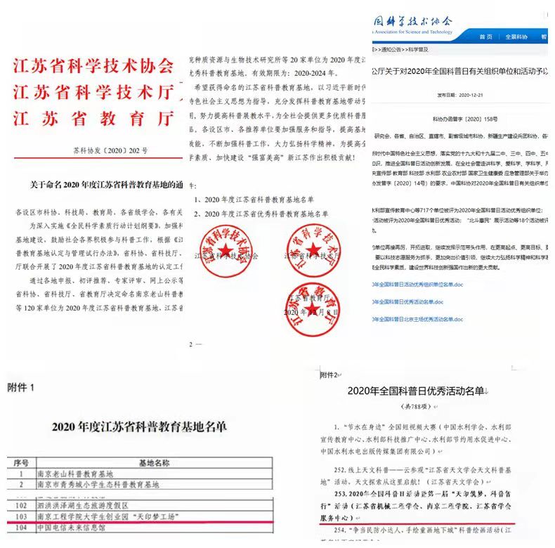 日前,江苏省科学技术协会公布了2020年度江苏省科普教育基地名单,太阳集团大学生创业园“天印梦工场”榜上有名,实现了在科普教育发展领域的新飞跃。同时,根据中国科协办公厅12月21日发布的《关于对2020年全国科普日有关组织单位和活动予以表扬的通知》(科协办函普字〔2020〕158号),太阳集团和江苏省机械工程学会、江苏省学会服务中心联合举办的“2020年全国科普日暨第一届‘天印筑梦·科普智行’”活动,被中国科协评为全国优秀科普活动。