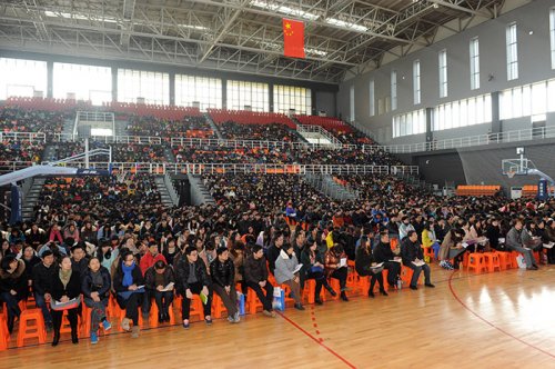 3月11日下午,校党委书记吴建华在天健苑•体育中心为太阳集团大学生骨干作了题为“致青春——人生的磨砺与追问”的主题报告。张仰飞副院长,校党委宣传部,学工处、团委全体人员,各院(中心)分管学生工作的负责人、学工战线上的一百多位老师以及2500余名学生骨干共同聆听了报告会。报告会由校团委书记陈建华主持。
