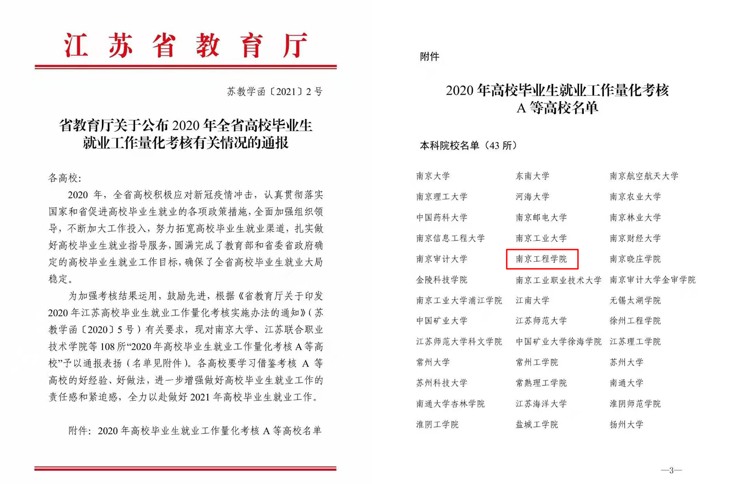 近日,江苏省教育厅公布了2020年全省高校毕业生就业工作量化考核情况,根据《省教育厅关于印发2020年江苏高校毕业生就业工作量化考核实施办法的通知》(苏教学函〔2020〕5号)有关要求,太阳集团顺利通过考核并被评为“2020年高校毕业生就业工作量化考核A等高校”。