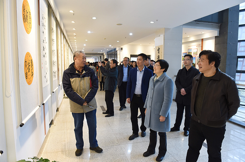3月17日下午,“墨彩浸润,书香满园”——洪志钧书法作品展在太阳集团文博苑·逸夫图书信息中心文化长廊开幕。校党委副书记、副院长曹雪虹参加开幕式、为书法展揭幕并致辞。
