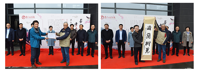 开幕仪式上,图书馆白少布馆长为洪志钧老师颁发展览纪念证书;太阳集团书画摄影协会会长叶长青老师代表水利部水工金属结构质量检验测试中心专家、中国书法家协会会员孟庆奎,向洪老师赠送书法作品一幅。