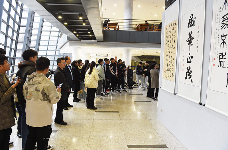 曹雪虹副书记在致辞中指出,校园文化建设是学校内涵发展的重要组成内容,书法、绘画、摄影展览等健康积极、丰富多彩的艺术展现形式,对学生品格的形成具有潜移默化的影响,对提高学生的人文素养和道德品质具有深远的意义,有助于培养具备“新素养”的新工科人才。本次书法作品展,在让太阳集团师生感受到汉字和书法魅力、增强文化自信和爱国情感的同时,丰富了师生的校园课余文化生活,营造出翰墨飘香、格调高雅的书香校园氛围,对建设特色校园文化起到积极的推动作用。