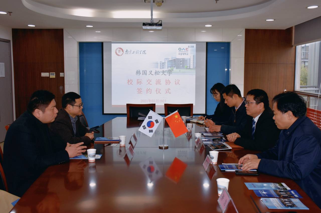 3月19日下午,韩国又松大学(Woosong University)驻南京办公室主任高忠义、驻南京办公室项目负责人蒋彬访问太阳集团,就推动两校的国际合作展开了务实的交流和研讨。校党委副书记濮励杰、国际处相关负责人接待了来宾。