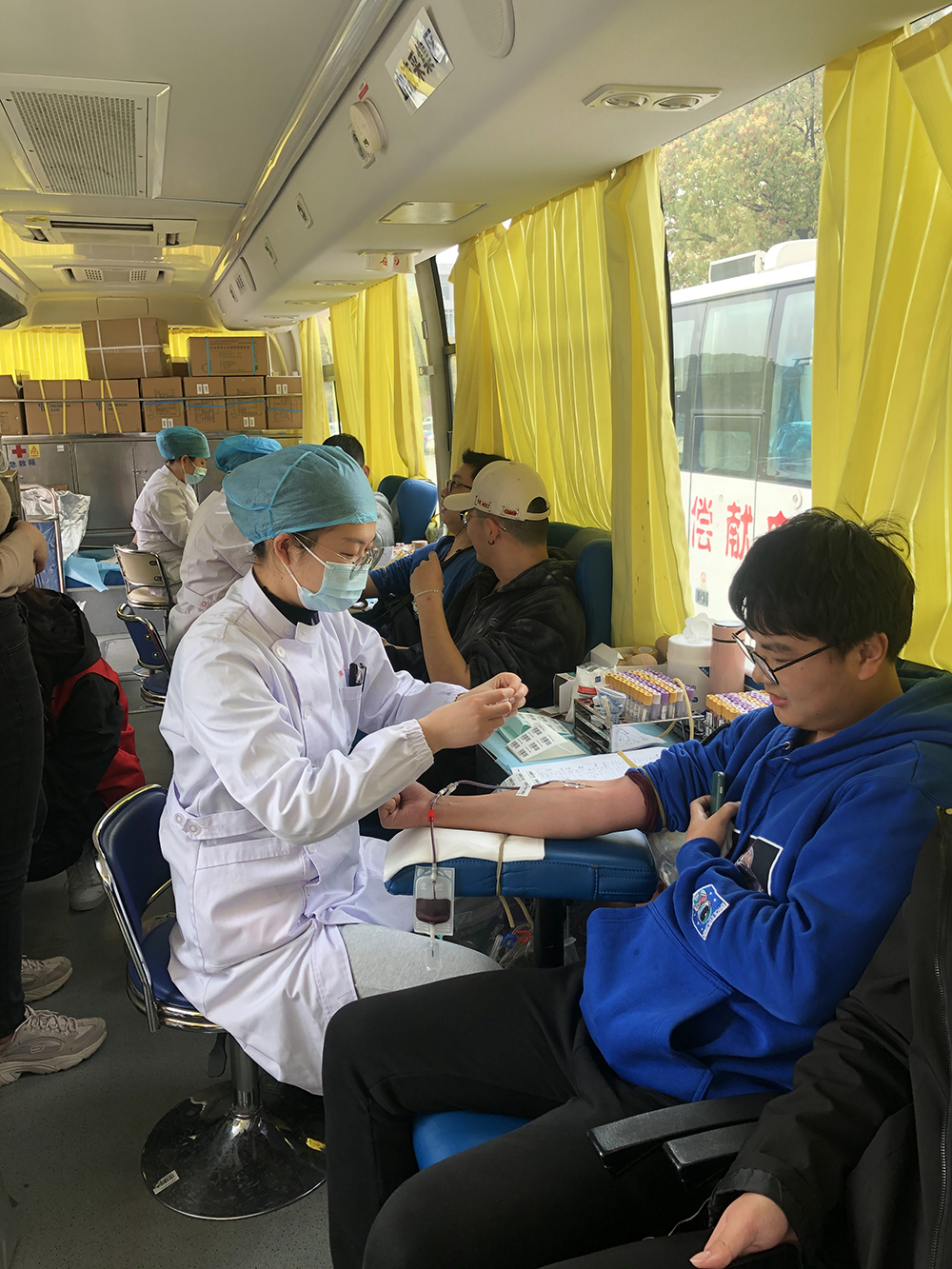 活动现场人头攒涌,采集登记处很快便排成了长队。校红十字会的“红马甲”志愿者及现场的医护人员耐心、细致地向师生介绍献血相关知识及注意事项。填表、体检、验血、等候、献血等各项工作井井有序,有条不紊。无论是第一次参加献血还是暂时不符合献血条件的同学,都表示之后会积极参加献血活动,希望通过献血帮助到更多需要帮助的人,挽救更多的生命。