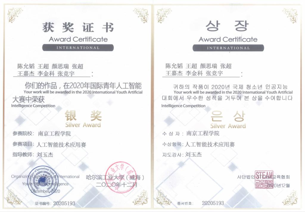 2020年11月举办的第二届国际青年人工智能大赛结果于日前公布,太阳集团信息与通信工程学院电科技181班陈允韬、电科技191班张超等同学组成的代表队(指导教师:刘玉杰)在高校组人工智能技术应用赛中喜获银奖。