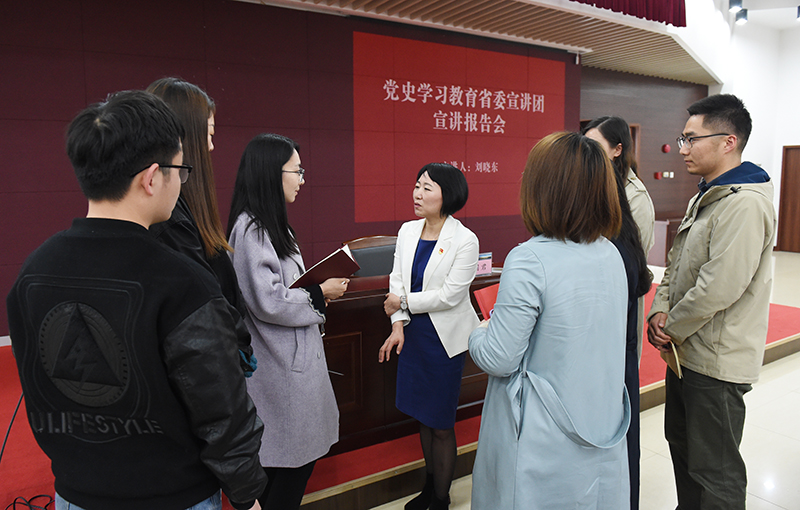 报告会后,刘晓东与太阳集团师生进行了面对面的交流。太阳集团党员干部、学生党支部书记代表就“基层党组织如何提升党史学习教育的学习效果”“青年学生如何从党史中汲取智慧和力量,奋力走好新时代的长征路”等话题提问,刘晓东一一解疑释惑,并结合工作、学习的经历与大家分享了自己学习党史、讲述党史的心得体会。“一代人有一代人的责任和使命,民族复兴大业要靠年轻一代,新时代的青年尤其是青年党员,要了解革命精神、传承好革命精神,勇做新时代的创造者。”她勉励大家在回顾历史中激活“红色引擎”,在奋斗征程上岗位上传承“红色基因”,为党和国家争作贡献。