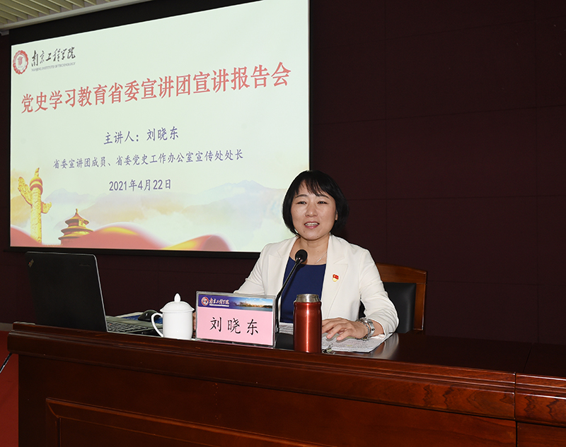 刘晓东围绕“深入学习领会习近平总书记关于党的历史的重要论述,充分认识开展党史学习教育的重大意义;认真研读党史基本著作,全面了解中国共产党百年奋斗的光辉历程和历史性贡献;深刻把握党史学习教育的重点;开展党史学习教育,要学懂弄通做实习近平新时代中国特色社会主义思想”等四个方面作了详细阐述。报告全程贯穿生动史实和详实数据,对江苏大地上的红色元素进行了重点解读;一幅幅珍贵的历史画面、一个个鲜活的奋斗故事、一篇篇共产党人创作的奋进诗篇……让披荆斩棘、不懈奋斗的百年光辉历程历历在目,让聆听者深切感受到中国共产党将初心使命牢牢写进历史、深深融入岁月。