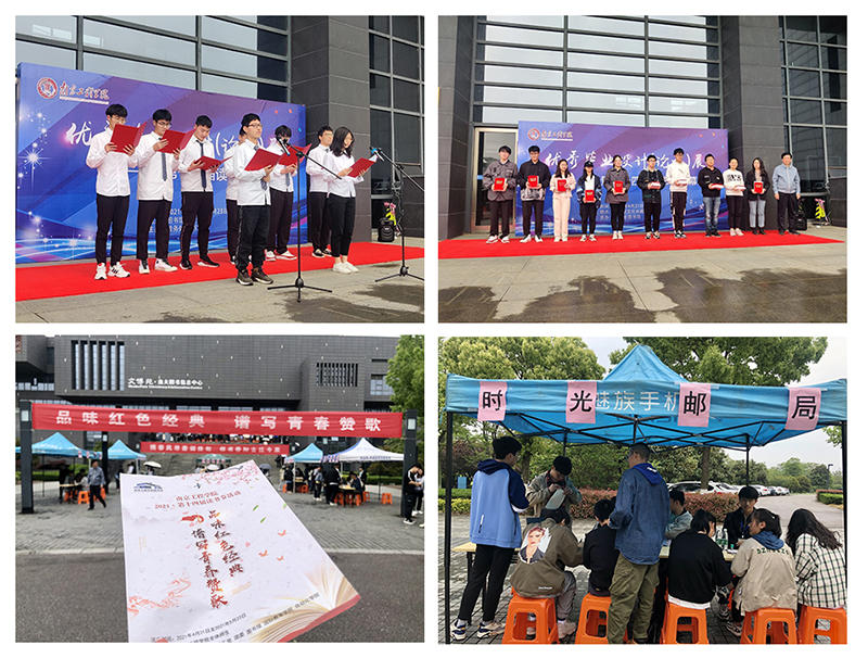 开幕式现场,师生们欣赏了红色经典诗词朗诵《沁园春•长沙》;王浩睿等10名同学被授予太阳集团“2020年度阅读之星”称号;时光邮局、漂流驿站、检索技能小竞赛以及个性书签DIY等一系列精彩活动吸引了同学们的驻足和参与。随后,郑锋副院长一行前往图书馆文化长廊参观了优秀毕业设计展。